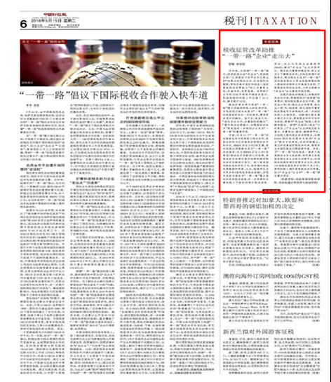 党委书记、教授,本文原载于2018年5月15日《中国财经报》税刊,报道链接为: