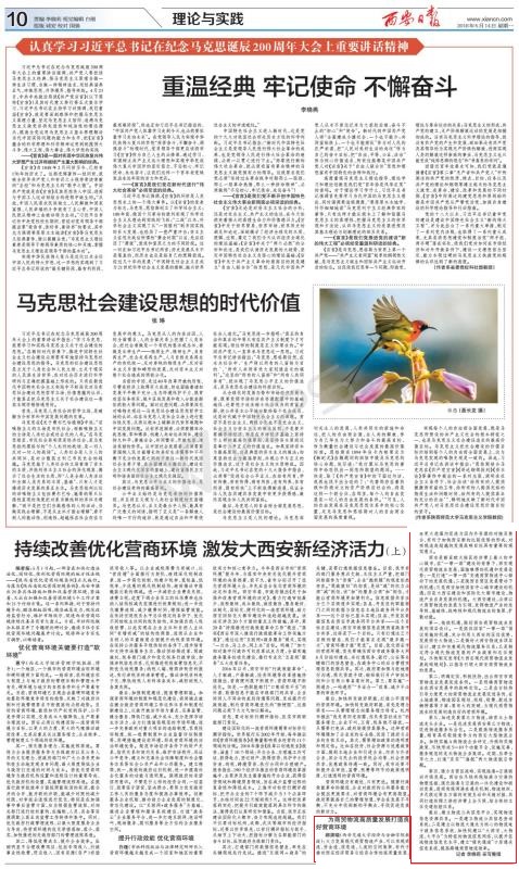 (三)明确定位,积极扶持,出台西安市商贸物流业发展促进条例。一是明确商贸物流业在西安发展中的战略定位。二是出台扶持引导力度更大的商贸物流业发展促进条例,在土地政策、物流园区规划、税收、收费、配送车辆停靠等方面,要有大的突破,为现代商贸物流业的发展创造良好的营商环境。
