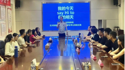随后,大会进入考公经验交流环节,同学们积极提问,新录用公务员们则耐心解答。徐峥嵘、南含月等新录用公务员分享了在考公道路上的宝贵经验。徐峥嵘首先作为新录用公务员代表向在座的同学们介绍了考公经验,他从方向选择、备考方法、面试技巧等方面提出建议,鼓励同学们勇敢追求目标。南含月作为交大财政学的优秀毕业生,此次以第一名的优异成绩考入国家税务总局碑林区税务局,她详细讲述了自己在备考路上学习方法和心得,更是让在场的同学们受益匪浅、大受鼓舞。