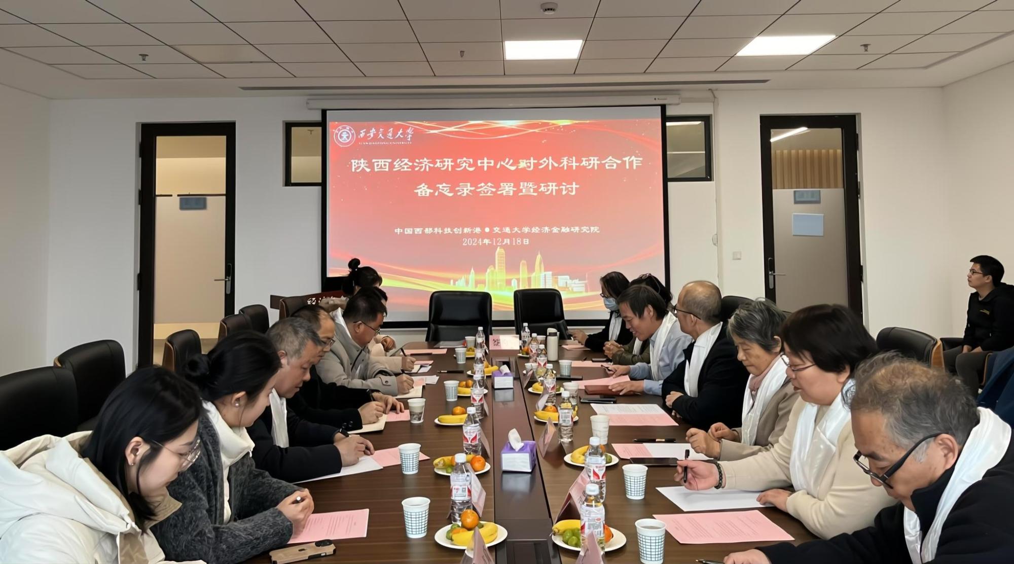 陕西经济研究中心(以下称“中心”)与西藏民族大学财经学院、陕西省投资和贸易促进中心科研合作备忘录签约仪式暨合作研讨在创新港举行。西藏民族大学财经学院院长陈爱东教授,陕西省投资和贸易促进中心负责人杨耀富、主管孙思佳,陕西省统计科学研究所(合作单位)二级调研员郭秦川,熟女av