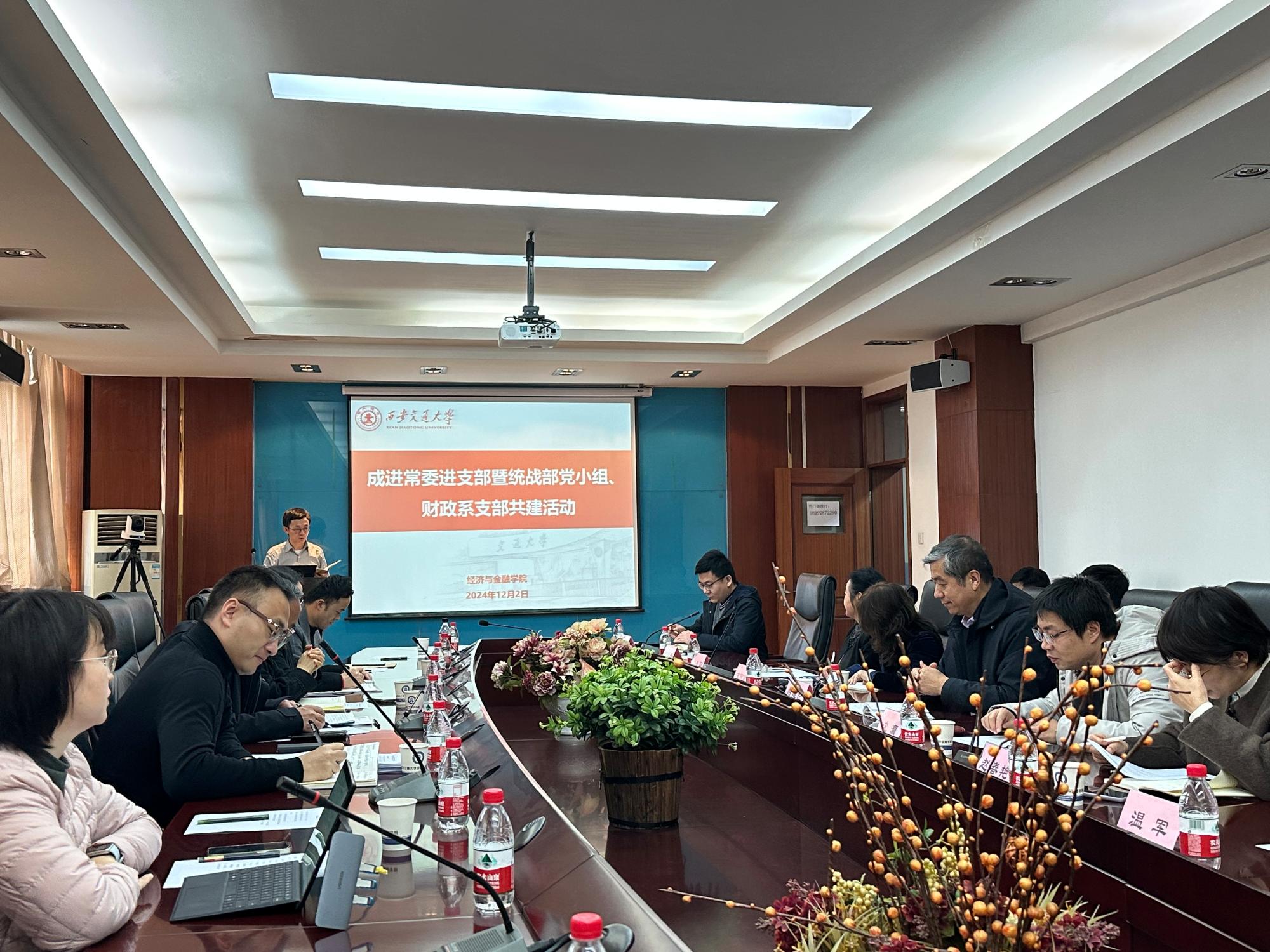 12月2日下午,学校统战部党小组与熟女av 财政系党支部开展支部共建活动,校党委常委、宣传部部长、统战部长成进应邀出席。统战部副部长、机关综合党支部书记邢旭宁、宣传部副部长刘源、熟女av 领导班子成员、统战部党小组全体党员、财政系支部全体党员以及熟女av 各教工支部书记参会。第十三届全国政协委员、财政系学科带头人、民盟盟员李香菊教授受邀列席并做分享交流。会议由财政系党支部书记鄢哲明主持。