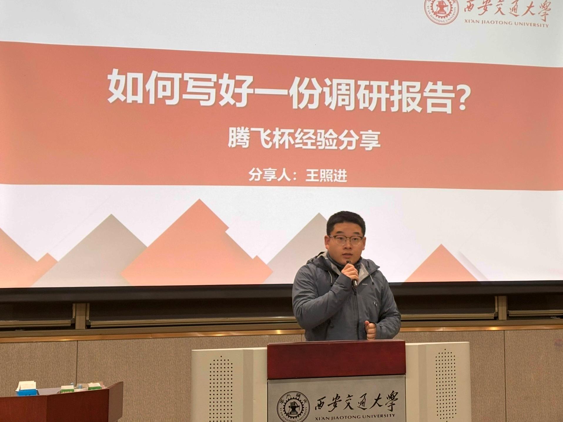 王照进同学以如何写好一份调研报告为切入点,深入浅出地给大家进行腾飞杯的经验分享。从学科特点入手,分享了跨领域学习经验。王照进同学表示,用心去钻研,以逻辑和方法为基础,不局限于领域,这样才能更好地推动工作。王照进同学同时还讲述了书写商业计划书的通用经验和个性化建议,并强调了团队成员在分工合作中的重要性。