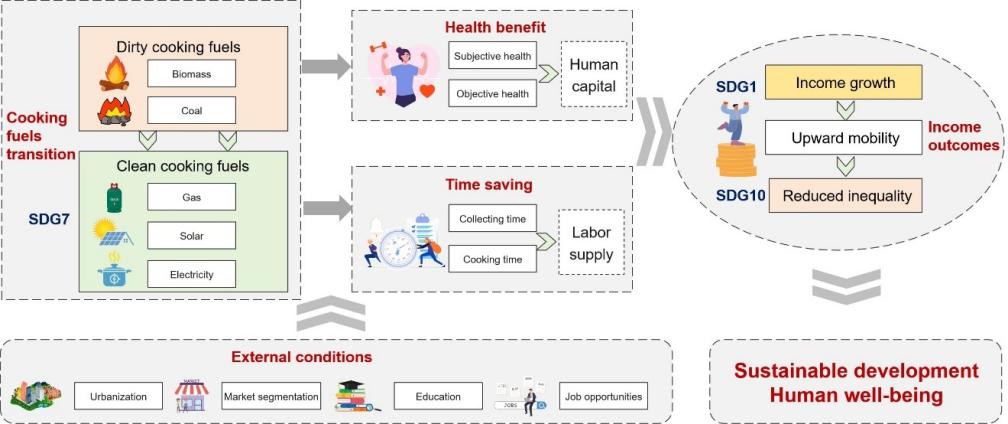 消除贫困、推行经济适用的清洁能源和减少不平等均是联合国要在2030年实现的可持续发展目标。中国在推动能源转型与消除绝对贫困等领域取得了举世瞩目的成就。研究清洁能源对于家庭收入与不平等的影响机制,有助于理解不同的可持续发展目标间的相互作用,揭示实现共同富裕的能源使用路径,协同推进可持续发展目标实现。