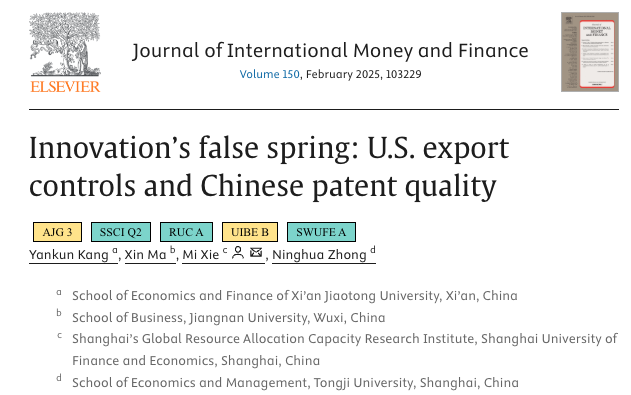 近日,该研究以"Innovation's false spring: U.S. export controls and Chinese patent quality"为题在金融学国际顶级期刊Journal of International Money and Finance (JIMF)正式发表。亢延锟为该论文的共同第一作者,熟女av