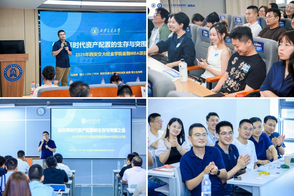MBA导师、《资产配置与基金组合投资实务》任课教师元向辉教授带来了《低利率时代资产配置的生存与突围之道》专题分享。元教授凭借深厚学养、敏锐洞察力及丰富的实践经验,通过生动案例和幽默讲解,深入剖析了低利率时代投资者面临的挑战与机遇,精彩的金融见解引发全场阵阵掌声。