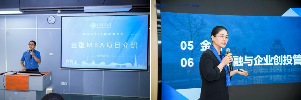 MBA中心主任马草原教授与副主任刘泓汛教授分别为MBA(数字金融与企业创投管理方向)和MBA(金融方向)的新生进行了项目全面解读。他们详细介绍了金融MBA的培养体系、课程特色及项目优势,展示了紧跟前沿的校企合作课程、高水准的实践基地平台、专业的校内外导师队伍,以及创新的“双导师+三课堂”培养模式,让新生们对即将开始的学习之旅充满期待与向往。