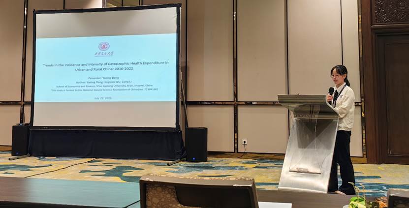 硕博研究生也在大会上积极展示各自的研究成果。博士生陈丹蕾的两项研究“Effectiveness of Direct and Indirect Time Preference Elicitation Methods Across Domains in Predicting Health Behaviors: Evidence from Rural China”与“Gender Differences in Time Preferences Across Health and Financial Domains: Do Elicitation Approaches Matter?”分别由吴静娴副教授和博士生刘琦琦代为汇报,研究围绕时间偏好在健康行为预测中的作用,以及性别差异与测量方法的影响,深入探讨了时间偏好测量在不同领域的适用性;博士生刘琦琦聚焦于健康领域时间偏好的测量一致性与应用实践,分别作题为“Time Preference in the Health Domain Among Rural Adults in China”与“In Search of a Preferred Time Preference Elicitation Method in the Health Domain Testing the Consistency Between Direct and Indirect Approaches”的汇报;硕士生邓亚萍围绕家庭灾难性卫生支出,分别以“Socioeconomic Inequalities in Financial Risk Protection in China: An Evaluation of Universal Coverage of Social Health Insurance”与“Trends in the Incidence and Intensity of Catastrophic Health Expenditure in Urban and Rural China: 2010–2022”为题作报告,系统分析了中国城乡家庭卫生支出风险趋势及其背后的社会经济不平等问题,具有重要的现实意义和政策启示;硕士生仝坤鹭则作了题为“Income-Related Inequalities in Chronic Pain Among Middle-Aged and Older Chinese Adults: A Population-Based Cross-Sectional Study”的报告,聚焦中老年人群慢性疼痛的收入相关不平等问题,揭示了健康结果中潜在的社会分层影响,呼吁更多关注弱势人群的健康状况。