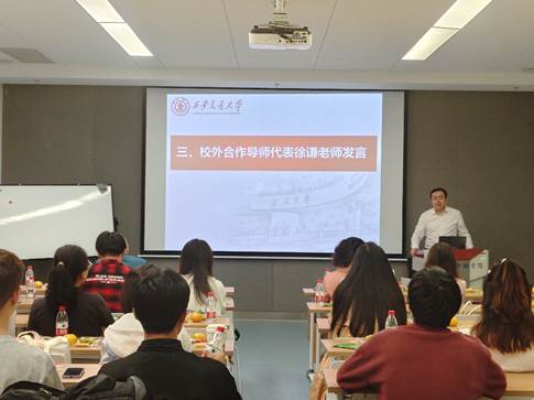 校外合作导师代表——西部信托有限公司董事长徐谦老师结合从业经历分享时强调,财政领域需理论与实务并重。他鼓励新生以“系统化思维”学透经典理论;激励大家坚持“问题导向”,用理论分析财税改革等现实议题,做到学以致用;建议同学们利用宝贵的在校时光,努力向导师请教经典理论和新方法,用知识武装头脑,以实干拓展眼界。同时,他邀请新生参与西部信托合作实践项目,在实操中深化认知,为未来发展打牢基础。
