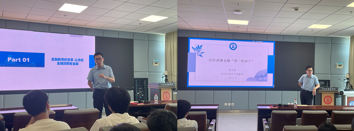见面会之后,金融系主任程茂勇教授带来了“扣好清廉金融‘第一粒扣子’”专题课。他从“金融教育的变革” “数智金融背景下清廉金融内涵” “熟女av