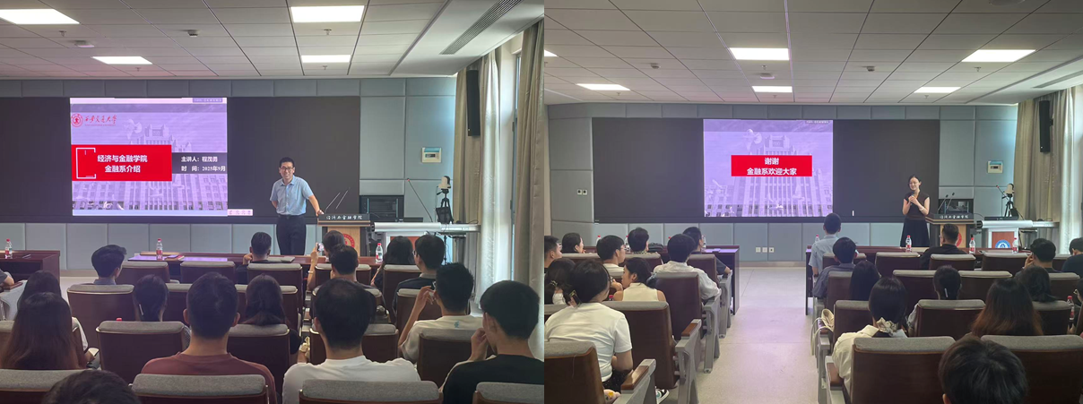 金融系主任程茂勇教授对2025级新生表示热烈欢迎,他从金融系的学科建设、师资队伍、校友资源、就业去向等方面进行了详细介绍,并希望同学们能脚踏实地认真学习,造就过硬本领,未来以专业技能服务人民,用爱心热心奉献社会,成为国家栋梁之材。青年教师代表葛瑶结合自身经历,分享了她在研究生阶段的学习经验。她建议同学们将“完成任务”的学习心态转变为“主动探索”的心态,减少简历上“浅尝辄止”的经历点缀,挖掘自身特长、明确职业目标,从特定领域切入,主动探索、广泛学习,将该领域学深钻透,以此形成个人核心竞争力。她还勉励同学们珍惜人生中难得的沉淀期,在学习与研究中坚守初心,稳步成长。