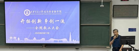 孙早在总结讲话中对学院近期在教学、科研和人才培养等方面取得的成果予以充分肯定,对全体教职工的辛勤付出表示感谢,并提出三点要求:一是要强化思想引领,厚植家国情怀。作为高校教师,须持续深化政治理论学习,将“立德树人”根本任务贯穿教育教学全过程,弘扬西迁精神,推进课程思政建设,培养学生成为堪当民族复兴大任的时代新人。二是聚焦现实需求,产出一流成果。应坚持问题导向,积极响应国家经济社会发展中的重大关切,深入实践调研,推动理论创新与实践应用相结合。他鼓励青年教师应勇挑重担,在教学科研实践中快速成长。三是营造和谐氛围,增强团队凝聚力。作为集体的一员,每一位教师要自觉维护学院大家庭的温暖氛围,党员干部须率先垂范,老教师应做好“传帮带”,全院上下凝心聚力,进一步巩固团结协作、积极向上的良好局面。