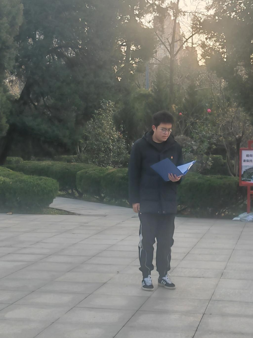 团委学生代表冯凯旋同志结合国家公祭日的历史意义发言。他沉痛追忆了八十八年前南京城的惨痛历史,指出设立国家公祭日是为了铭记历史、珍视和平、警示未来。他强调,作为新时代青年和入党积极分子,铭记那段黑暗历史,不是为了延续仇恨,而是为了深刻理解“落后就要挨打”的历史教训,更加坚定捍卫和平、振兴中华的决心。要将对历史的铭记转化为自强不息、砥砺前行的动力,在学业与工作中奋发有为,肩负起时代赋予的重任。
