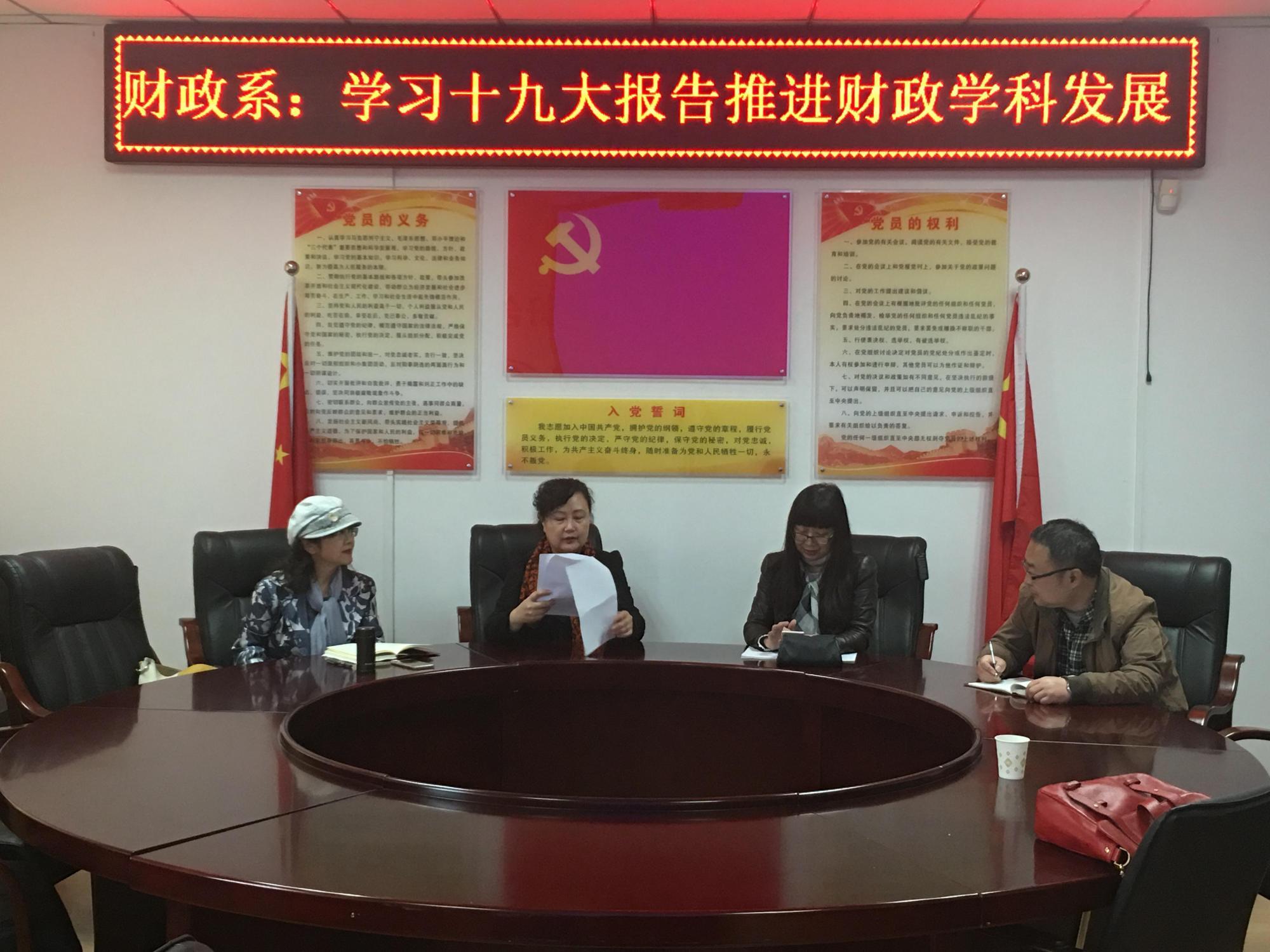 2017年10月24日下午财政系党支部召开了支部党员大会,会议的主题是学习十九大报告推进财政学科发展。
