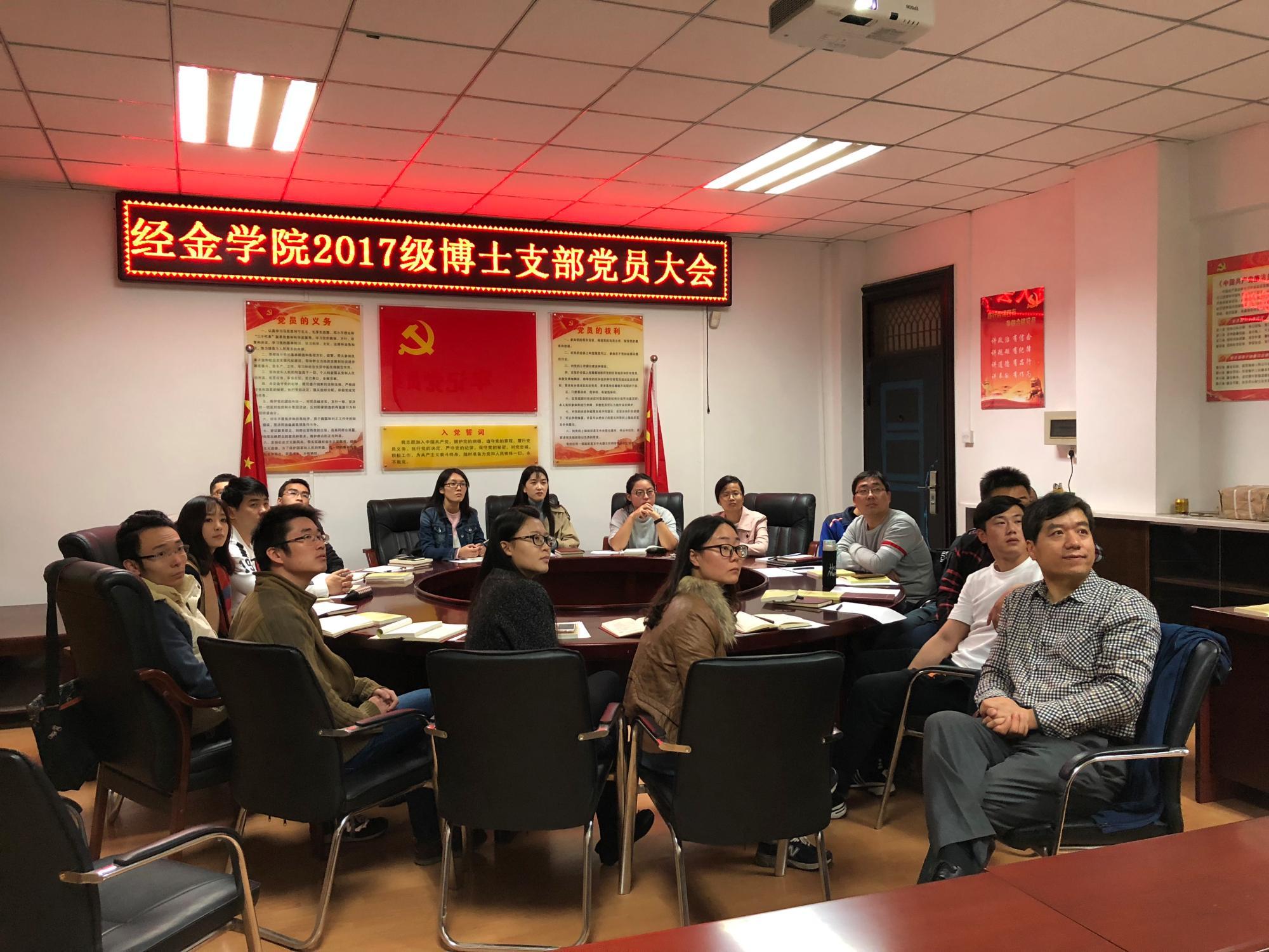 此次会议大家一致认为:十八大以来的五年间,以习近平同志为核心的党中央迎难而上、开拓进取,革故鼎新、励精图治,团结带领全党全军全国各族人民共同奋斗,推动我国发展站到了新的历史起点上,中国特色社会主义进入了新的发展阶段。旗帜引领方向,道路决定命运。高举中国特色社会主义伟大旗帜,确保党和国家事业始终沿着正确方向前进,是实现民族复兴伟大梦想的根本保证,既不走封闭僵化的老路,也不走改旗易帜的邪路,要坚定不移走中国特色社会主义道路,“中国号”巨轮始终沿着正确航向劈波斩浪,驶向民族复兴的光辉彼岸。同学们尤其对报告中,习近平总书记特别指出青年在实现中华民族伟大复兴中国梦中的重要作用印象深刻,作为党员中的博士、博士中的党员,我们深感责任重大。今后的学习和工作中,我们将以新时代中国特色社会主义思想为指引,贯彻落实党的十九大各项部署,紧密团结在党中央周围,不忘初心,牢记使命,务实担当,奋勇向前。