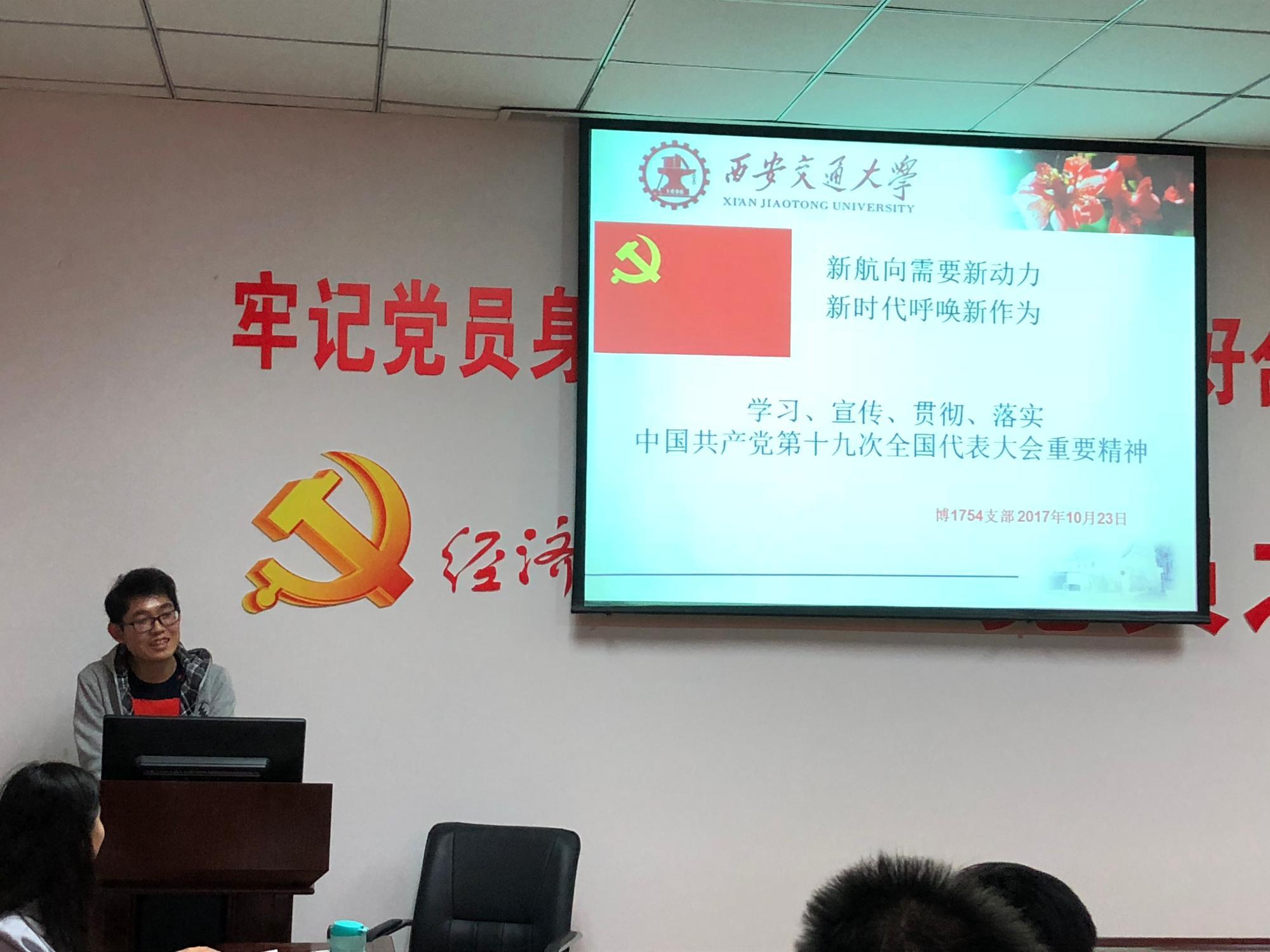 党委副书记周建伦老师出席。支部全体党员、积极分子针对十九大报告内容进行了深入学习和积极讨论。