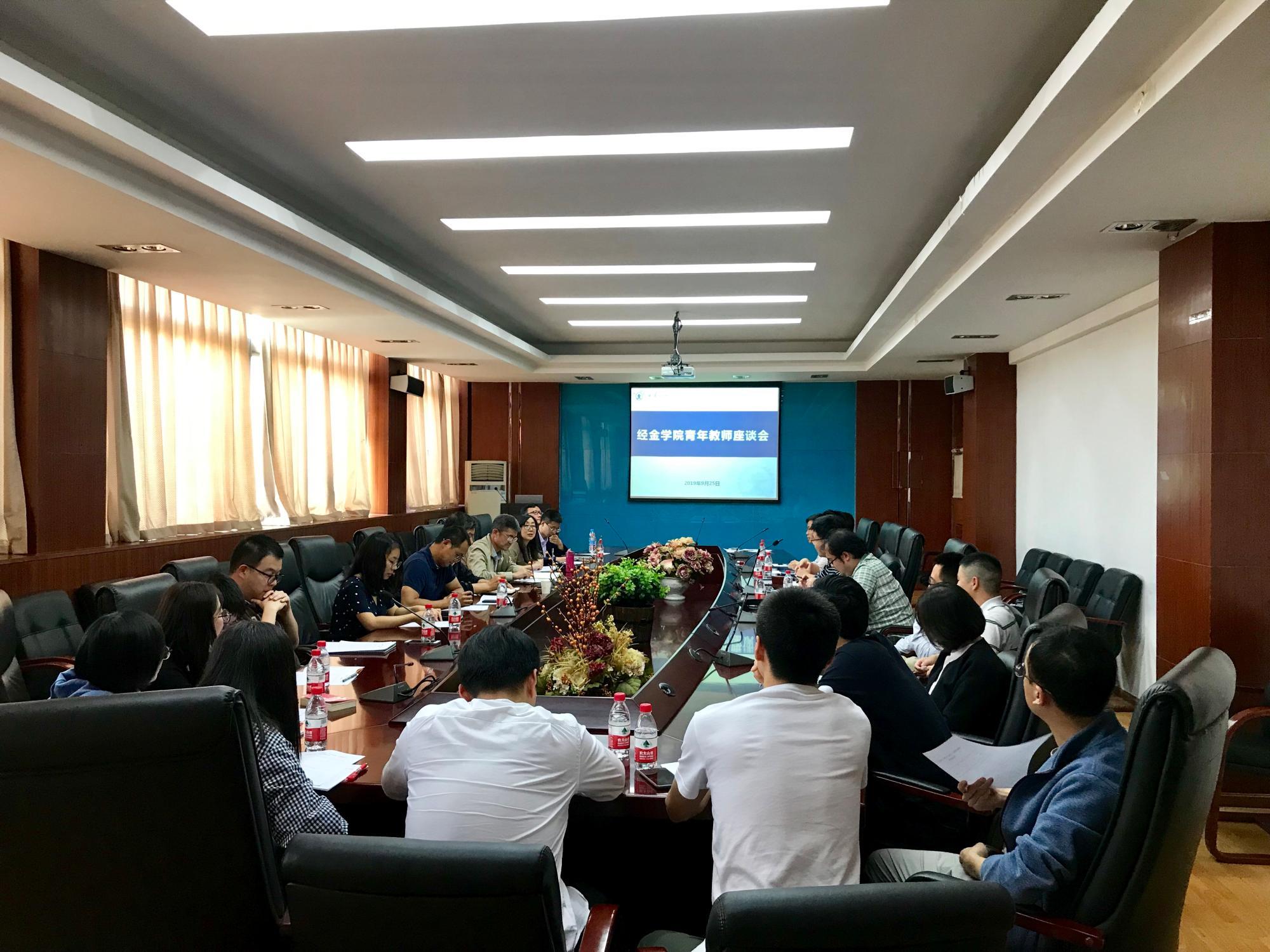 于国庆临近之日召开了青年教师座谈会。学院党委书记宋丽颖、副书记周建伦、副院长赵春艳、启德书院副主任李聪以及学院青年教师代表三十余人参加了座谈会。会议由院长孙早主持。