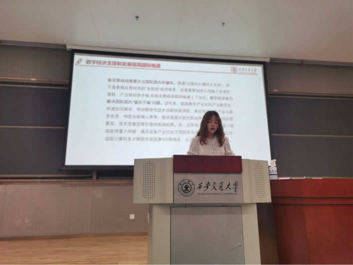 研究生为深入开展四史学习教育活动而成立的“经策”微宣讲团成员为支部成员开展以中国经济故事为主题的宣讲会,宣讲团成员郭若亚主要从数字经济的角度为成员们进行了讲述。