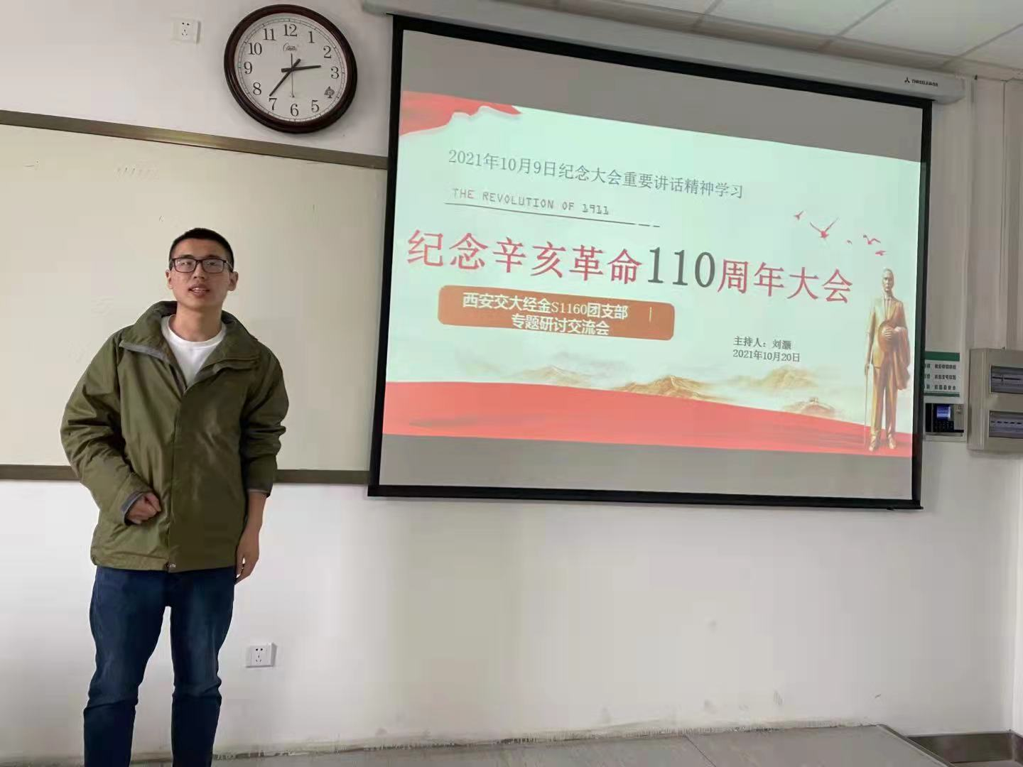 重温辛亥革命历史、汇聚110年来的磅礴力量。10月20日,硕1160团支部召开专题研讨会。会上,团支部书记、班长刘灏先讲述了辛亥革命的历史、辛亥革命的成果以及辛亥革命的意义。以孙中山先生为代表的革命先驱发动辛亥革命,结束了统治中国两千多年的君主专制制度,为中国的进步思潮打开了闸门。辛亥革命使人们意识到:实现中华民族伟大复兴是近代以来中华民族最伟大的梦想,必须弘扬爱国主义精神,加强海内外中华儿女的大团结大联合。辛亥革命对我国的发展有着十分重要的意义。