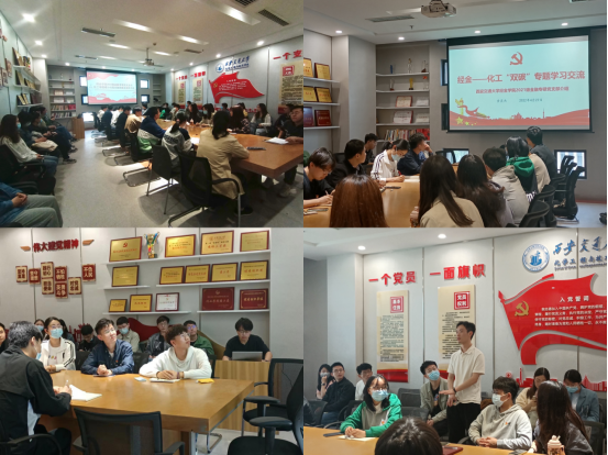 最后陶磊书记充分肯定了此次专题学习活动,认为跨学院支部共建能够从多学科角度对碳达峰、碳中和有更加全面的认识。他指出我们要学好自身本领,无论是化工还是金融,对实现“双碳”目标都有重要的支撑和引领作用。