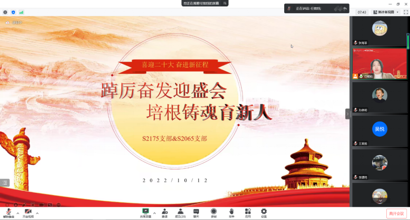 S2175党、团支部和电气学院S2065党、团支部召开了以“踔厉奋发迎盛会,培根铸魂育新人”为主题的联学共建专题组织生活会。两支部党员、团员代表参会,S2175班任铭钰主持会议。