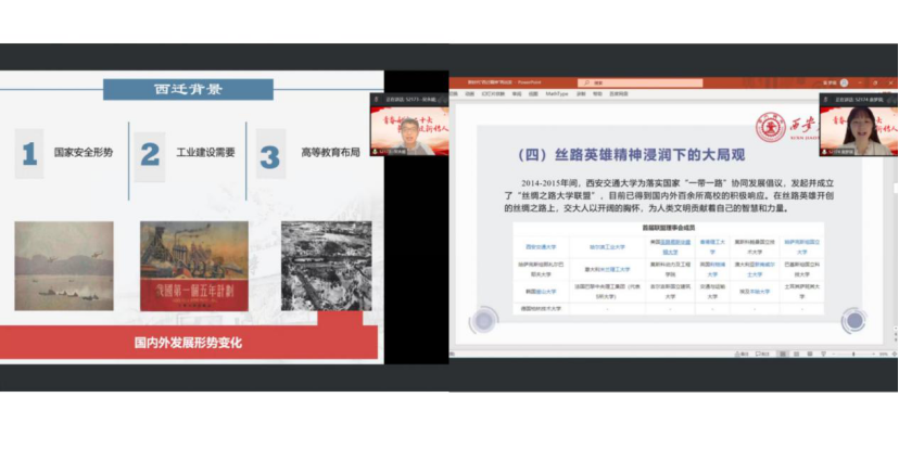 硕2174班党支部书记袁梦琪带来专题分享——《新时代“西迁精神”再出发》。阐述了西迁精神的内涵以及西迁精神在新时代的体现。她表示,西迁精神并没有成为过去式,而是作为共产党人的精神谱系代代相传。作为新一代的交大学子,更应该踔厉奋发、笃行不怠,争做西迁精神新传人。
