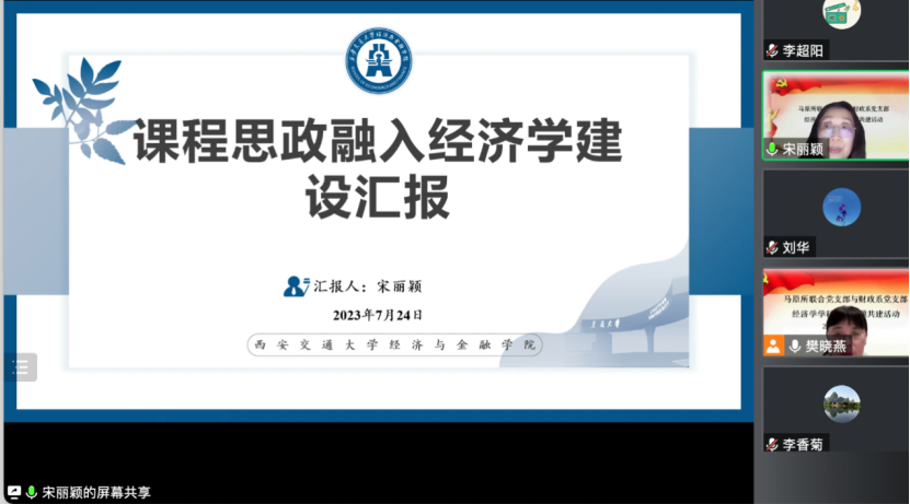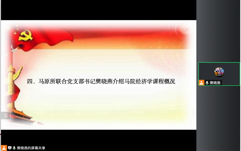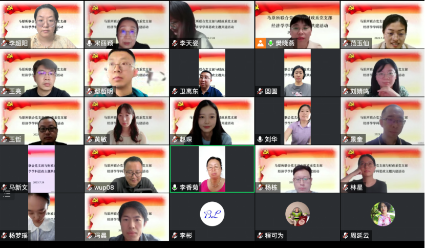 财政系党支部和马克思主义学院马原所联合党支部在线上举行经济学学科思政主题共建活动。马克思主义学院党委书记苏玉波、马原所联合党支部、财政系党支部全体党员和教师参加会议,马原所联合党支部书记樊晓燕主持会议。