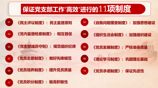 加强组织建设,提升工作科学化规范化水平。支部严格政治标准,高质量做好积极分子教育和发展党员工作,确保党员队伍的纯洁性和战斗性。严格落实“三会一课”制度,健全党的组织生活,严格党员管理,加强党员教育,认真学习党的理论知识,及时传达上级党组织的决议,听取、讨论支委工作,讨论支部内重大决议。过去的一年支部内各项工作有序开展,取得显著成绩。