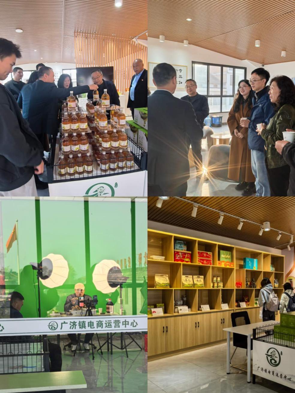 最后,师生们来到广济镇的电商运营中心,夏党辉书记介绍了镇上电商平台的人才引进成果,并强调了数字经济对本地经济发展的推动作用。南大坪村包村干部杜娟娟向师生们展示了由村民自主酿造、自主进行包装设计的猕猴桃酒和猕猴桃挂面等特色产品,并热情邀请大家品尝猕猴桃,还带领大家参观了电商直播间,一睹当地电商达人带货的风采。