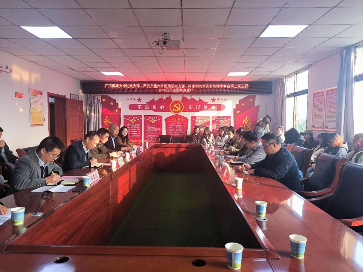参观结束后,师生党员与广济镇南大坪村党支部的党员同志们开展座谈,广济镇党政领导也参加了此次座谈。广济镇副镇长席宏亮对代表团表示热烈欢迎,并肯定了此次活动的重要意义。双方相互介绍了支部组织构成和参会人员情况,并就乡村振兴工作进行了深入交流。