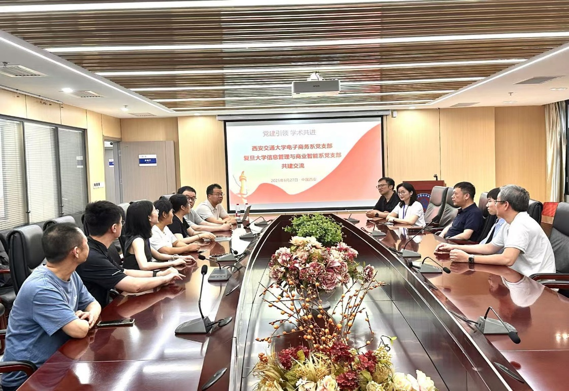 电子商务系党支部与复旦大学管理学院信息管理和商业智能系党支部携手开展“党建引领、学术共进” 主题共建交流活动。两支部党员教师齐聚一堂,围绕党建工作经验、学术前沿探索、人才培养模式等内容展开深入研讨。