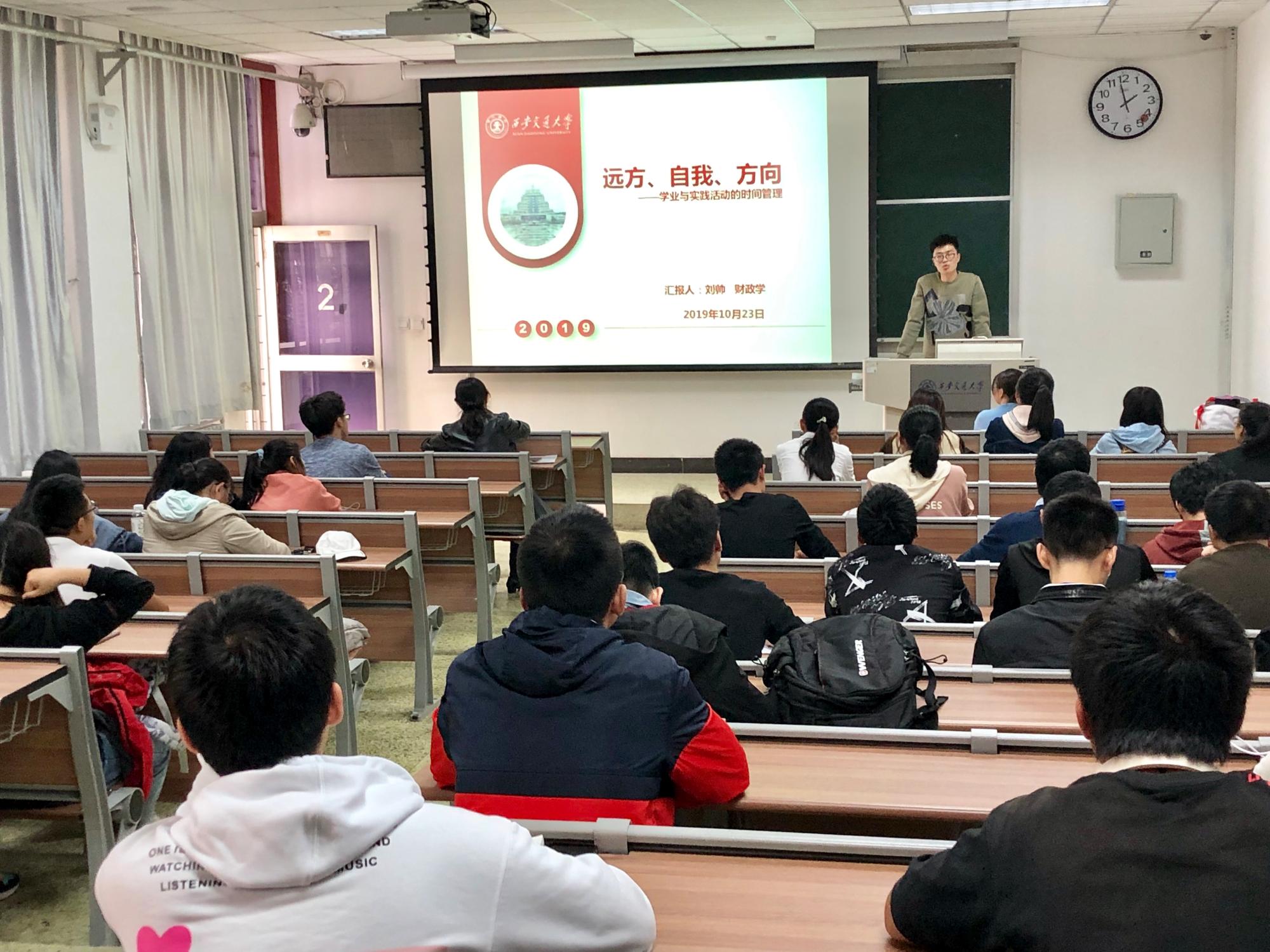 2019年10月23日,“知新讲坛”之学习经验交流会第二期在西配102举行。经济99班班主任张雅丽副教授主持,2016级财政学专业刘帅、高慧敏和张学智三位同学以“远方、自我、方向”为主题,与大家分享了自己大学三年的学习经验,三位主讲人均已保送至熟女av