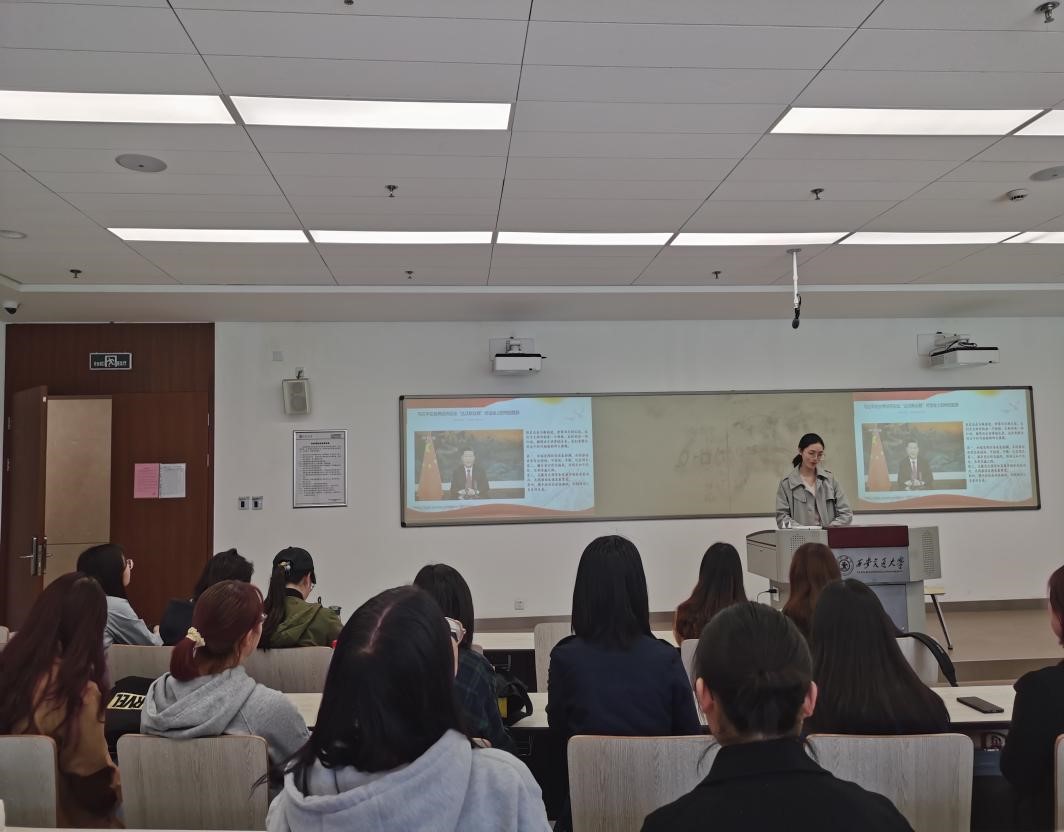 首先由党支部组织委员周薇为大家介绍了今年以来习近平总书记的系列讲话,之后由学生代表进行发言,让同学们真正体会习近平新时代中国特色社会主义思想内涵,增进政治认同、思想认同、情感认同。