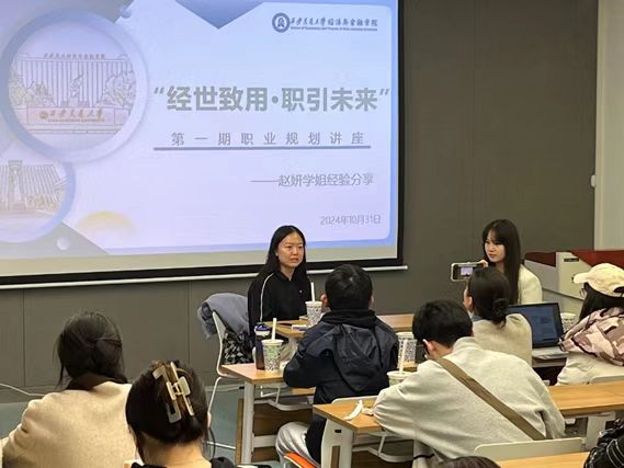 2024年10月31日,经金学院成功举办“经世致用•职引未来”职业发展与规划系列活动之国企秋招经验分享会。活动特邀已获得国企offer的研三学姐赵妍分享秋招过程中的宝贵经验,为同学们提供实用的求职指导。