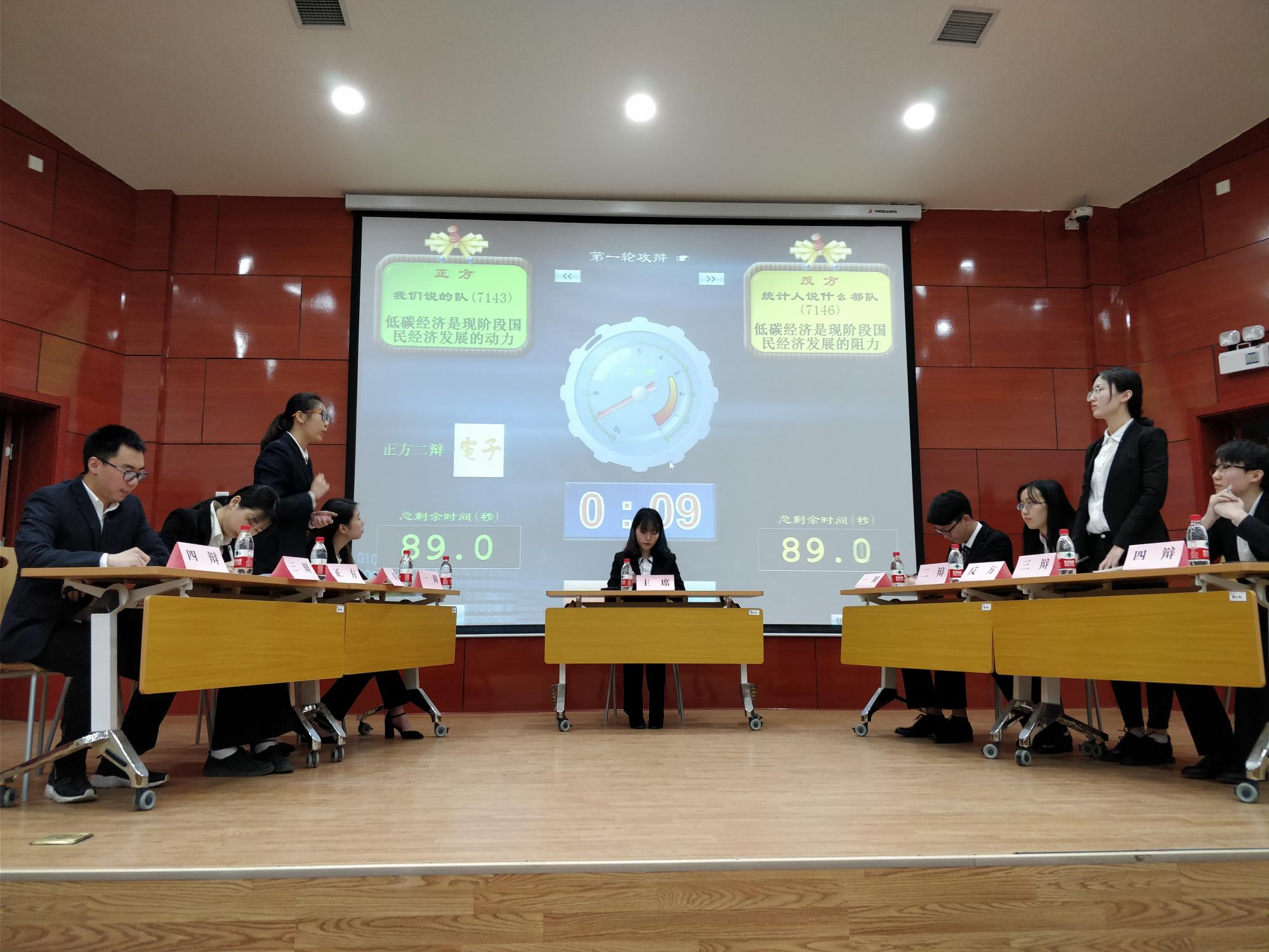 决赛于3月30日晚举行,正方为7143班“我们说的队”,其观点为低碳经济是现阶段国民经济发展的动力。反方为7146班“统计人说什么都队”,其观点为低碳经济是现阶段国民经济发展的阻力。