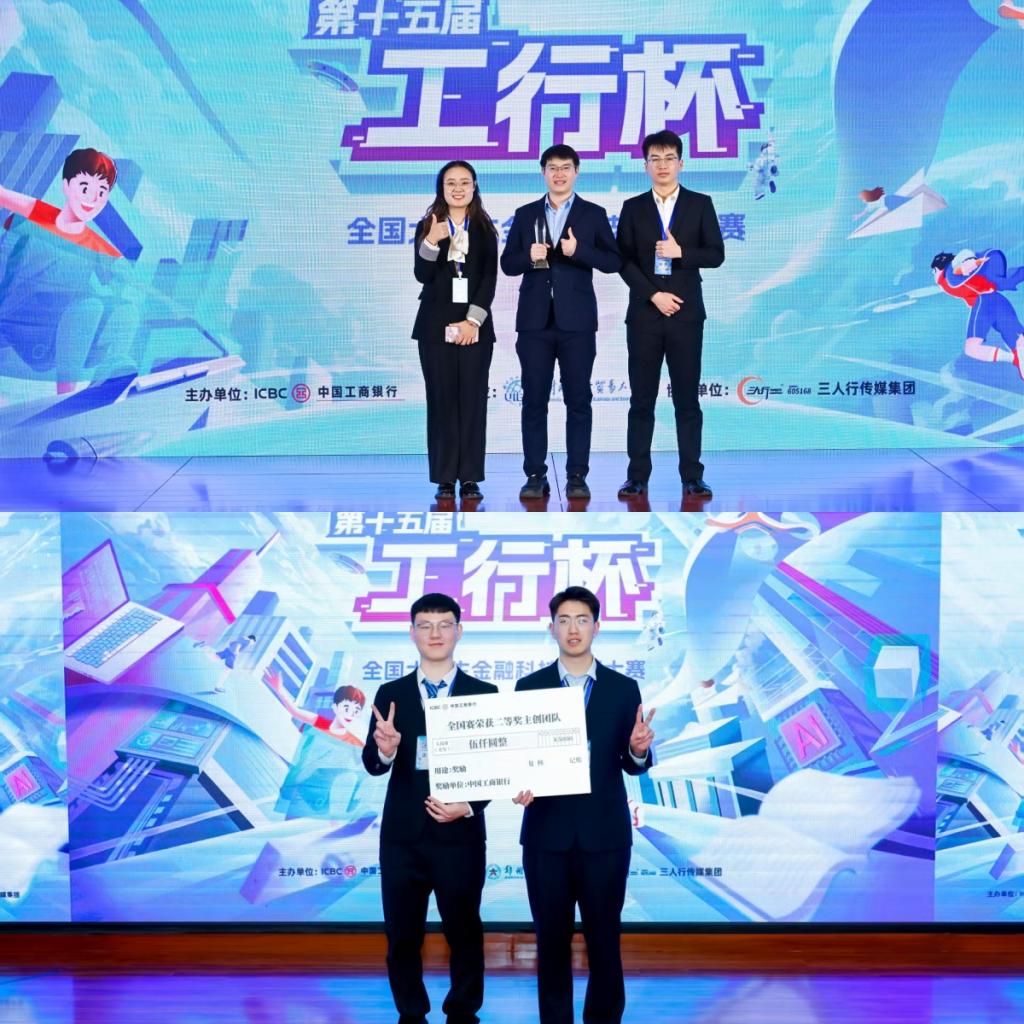 2025年3月15日,由中国工商银行主办的第十五届“工行杯”全国大学生金融科技创新大赛总决赛在对外经济贸易大学圆满落幕。熟女av 共有2项作品经过多轮角逐晋级国赛并取得奖项,其中由熟女av 程茂勇教授、电信学部王飞副教授指导,刘文俊、刘强和朱艺菲参与的《工行容e投——基于Transformer深度学习模型的智能投顾助手》项目荣获全国一等奖。由董志龙副教授指导,李杭书、孔文鹏、裴悦婷参与的《e贷出——小微企业出口信贷数字化增信平台》项目荣获全国二等奖。