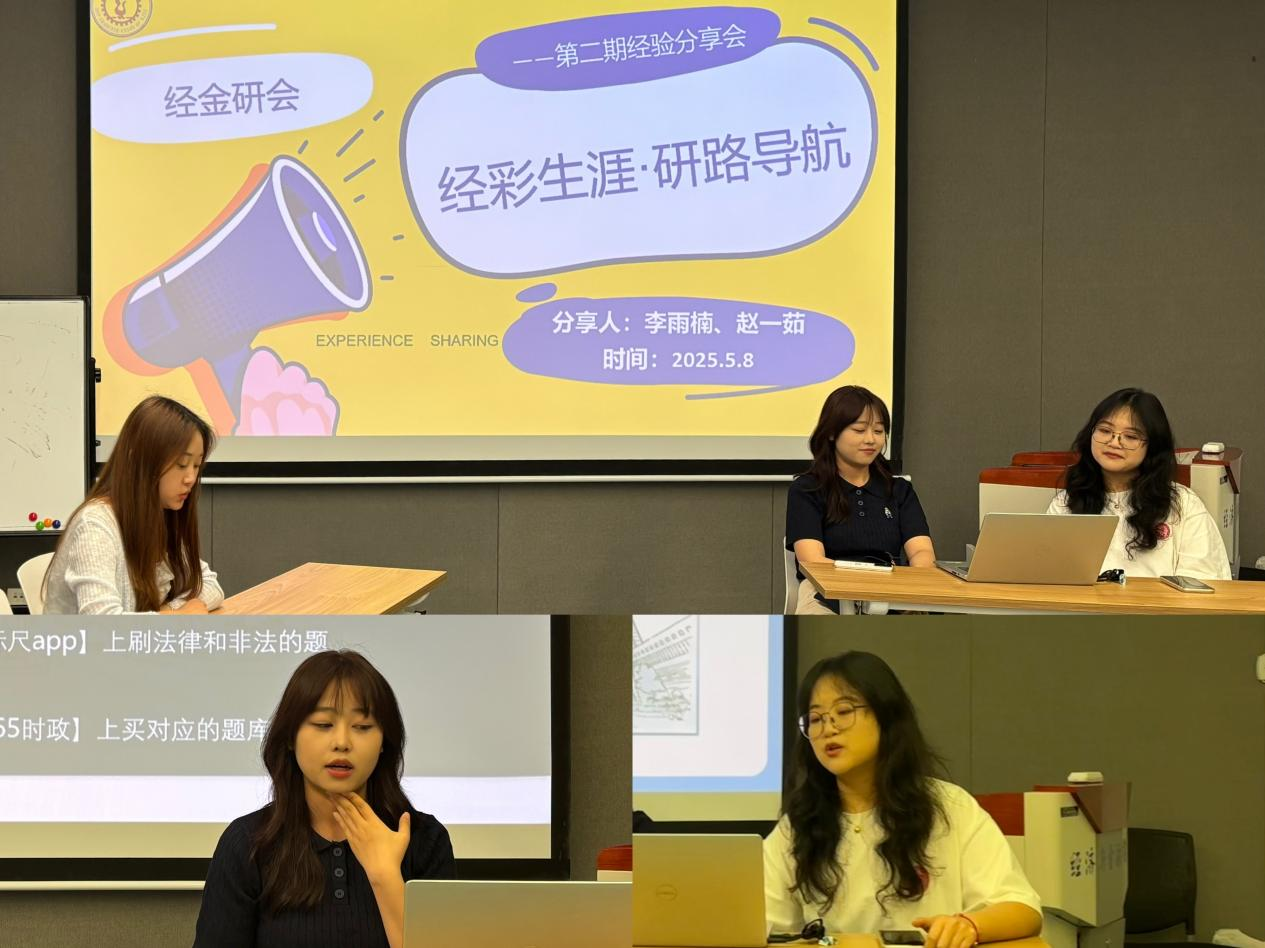 于5月8日举办"经彩生涯·研路导航"选调生经验分享会。活动邀请李雨楠与赵一茹担任主讲人,她们分别围绕自己备考陕西省选调与四川省选调的经历,为现场同学呈现了一场内容详实的经验分享会。