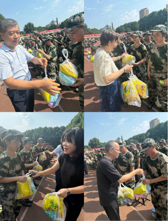 2024级本科新生军训正在如火如荼地进行中,8月30日上午,学院党委书记周建伦、副院长赵春艳、副书记刘小溪、院办主任张华一行前往军训场地看望慰问学院带训教官及参训新生,代表学院对教官们辛勤的教导付出表达感谢,对同学们昂扬奋斗的精神表示肯定,并为参训师生与指导教官送去了精心准备的慰问品。