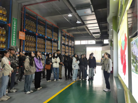 来到西安爱菊粮油工业集团,同学们跟随讲解员的引导,参观了集团油脂、油料和粮食的储备基地,深入了解了集团作为省、市、区三级储备和省市成品储备的重要地位和作用。