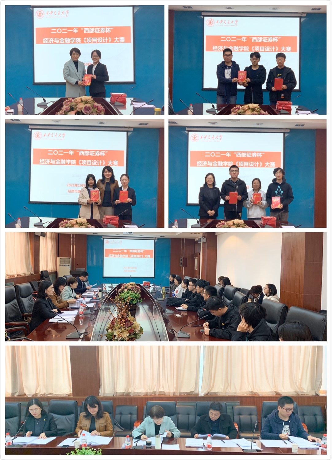 赵春艳副院长、沈灏副院长、程茂勇副教授,西部证券财富管理部尚嘉辉总经理、网络金融部孙莹莹总经理担任本次大赛的评委,学院各系推荐的9个队伍参加了本次比赛。