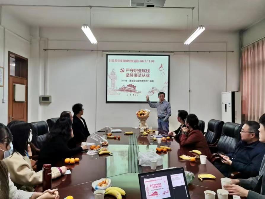 财政系支部书记鄢哲明副教授向全系教师做了题为“严守职业底线,坚持廉洁从业”的宣传教育,警示各位教师要严守职业底线,将洁身自好和廉洁从业牢记心间,落实到日常的工作中。