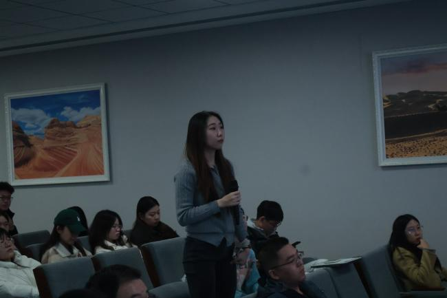 专家们的精彩演讲引发了现场热烈的讨论,与会专家与师生积极互动,反响极为热烈。产经系的青年教师樊仲琛就生成式人工智能(GAI)技术对广告影响的作用机理与张诚教授展开了讨论;博士生贾庆丹则针对广告展示率的具体分析细节向张诚教授虚心请教。电商系徐晓瑜副教授结合自身在阿里巴巴预售政策制定的实践经验,与钟远光教授进行了深入的讨论;青年教师刘晓敏就不对称信息在多产品定价中的影响与钟远光教授进行了交流。此外,电商系的副教授周博和张永忠老师还就人工智能技术的变革与柴一栋教授展开了深入的探讨。