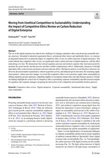 原文信息:Wu, D., Xie, Y. & Pei, Y. (2025). “Moving from Unethical Competition to Sustainability: Understanding the Impact of Competitive Ethics Review on Carbon Reduction of Digital Enterprise”. Journal of Business Ethics. //doi.org/10.1007/s10551-025-06135-1.